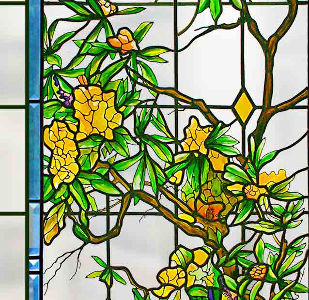 Détail Rhododendron avec reprises au pinceau en vernis couleur