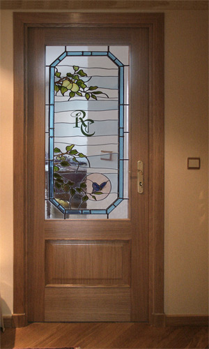 MOTIF PAON 01 avec BORDURE "PENCIL" ( forme octogonale ) Réalisation en plomb 2 faces sur verre "NATURE CRISTAL " ep. 4mm - Montage sous parecloses