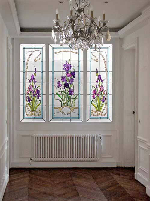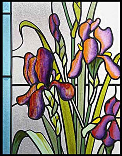 MOTIF Nature " Iris " sur maillage rectangle avec ruban " Coup de Fouet " (option)