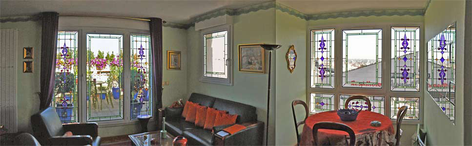 Tous volumes réalisés sur verre Nature Cristal 4mm et rapportés par collage UV sur doubles-vitrages existants
