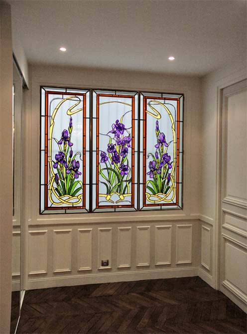 Réalisation sur verre "SATINBEL " ep. 4mm - Montage classique sous parecloses ( Appartement Paris )