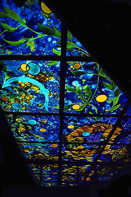 MOTIF : FOND SOUS-MARIN ( vernis couleur ) Réalisation sur verre feuilleté STADIP 44.2 opale ep. 8mm
