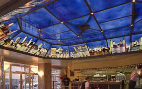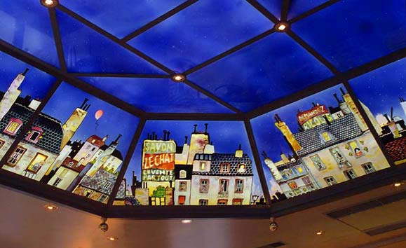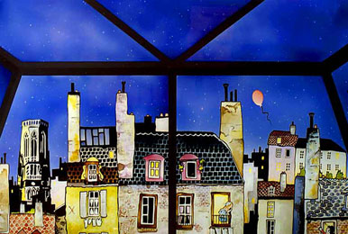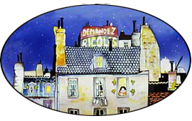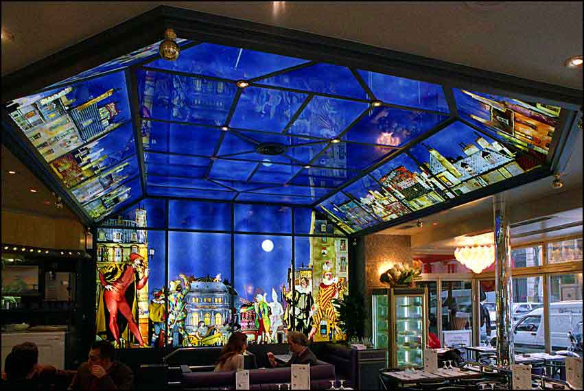 MOTIF " LE CARNAVAL " vernis couleur cerné noir Réalisation sur verre feuilleté opale 44.2