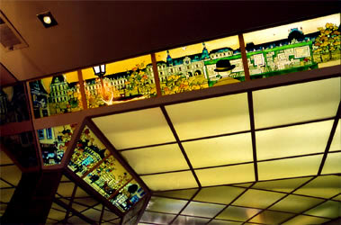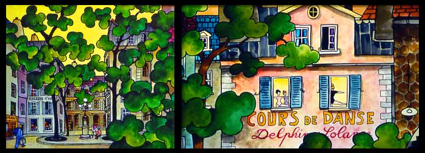 MOTIF : paysage naïf Paris en peinture sur verre et cerne noir