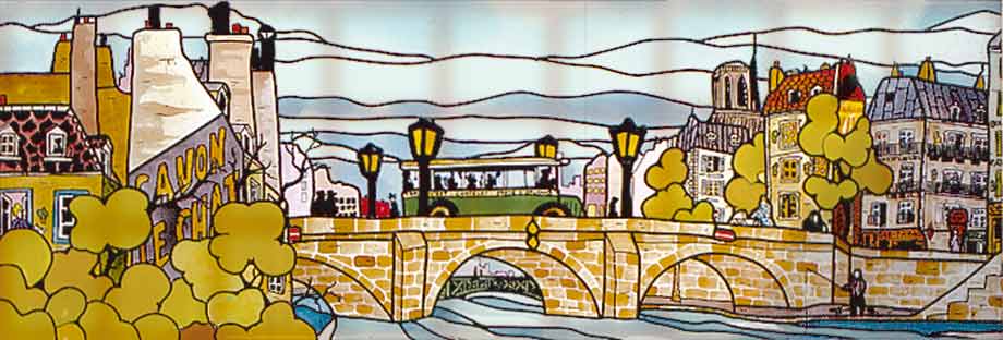 MOTIF Pont de Paris - vernis couleur en peinture sur verre - cerne noir