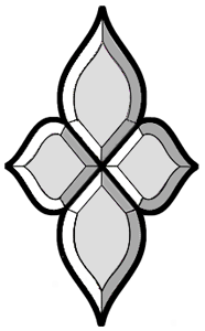 Composition de bevels " OS-23 " et " PTL" avec cabochons godrons " GDR-40/30 " à facettes