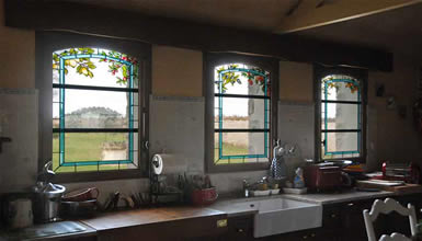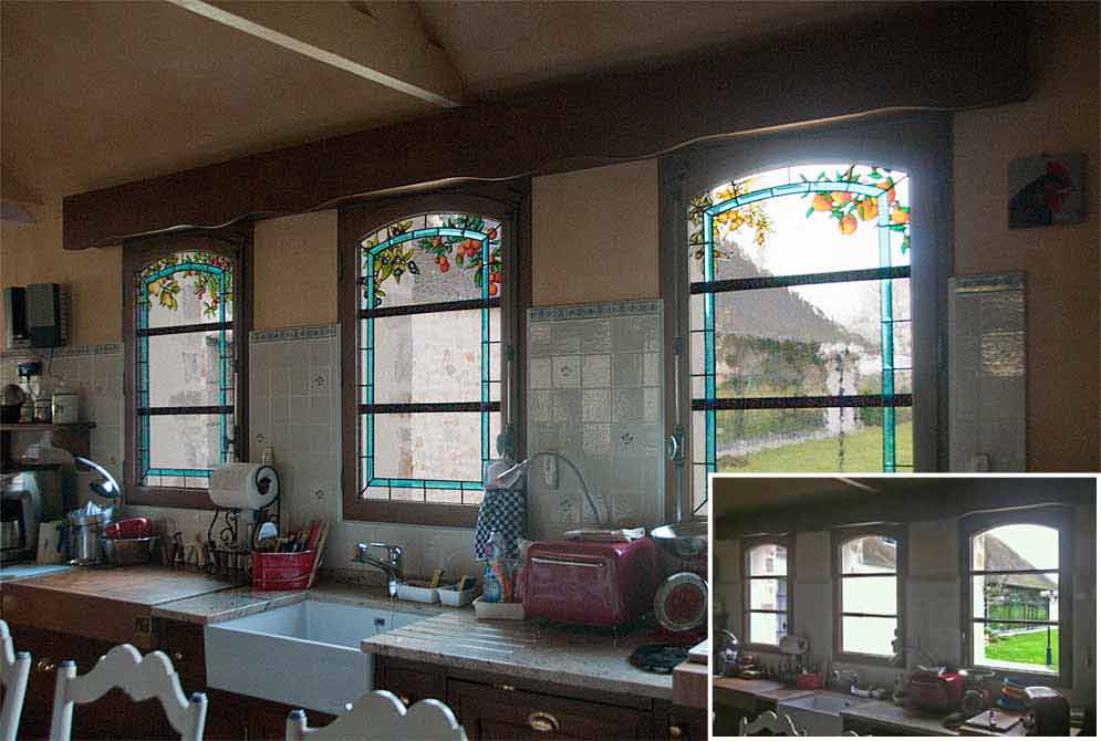 Réalisation sur verre "NATURE CRISTAL" ep. 4mm Montage par collage silicone sur double vitrage existant