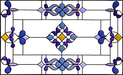 En haut ( FNT-11 ) : MOTIF " BVLD C49 " - En bas ( FNT-11bis ) : MOTIF " BVLD C40 " Compositions de petites pièces de verre biseauté assemblées par collage UV