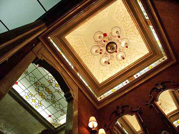 Plafond SALLE DE BAINS n°2 avec frise (composition de bevels et cabochons )