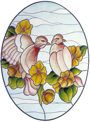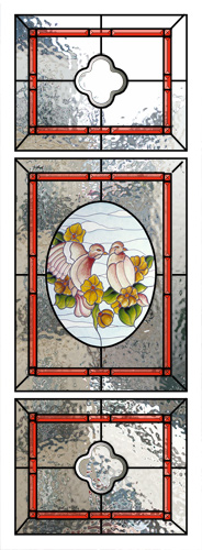 MOTIF Nature " PIGEONS " sur maillage de base " STRATUS " Au centre : projet pour cabinet de toilette