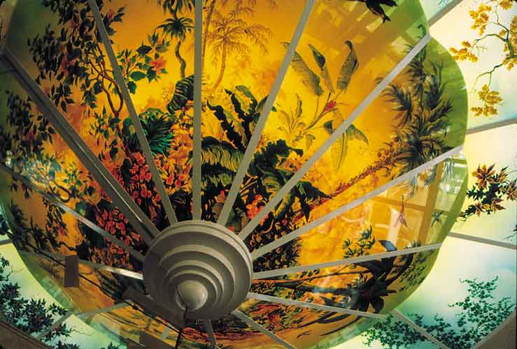peinture sur verre en vernis couleur d'après paysage papier peint