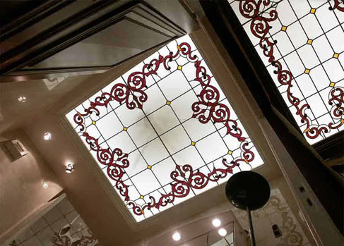 Réalisation sur verre feuilleté STADIP opale 44/2 - Pose sur corniche