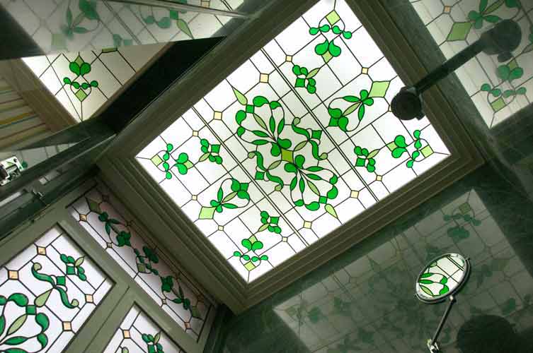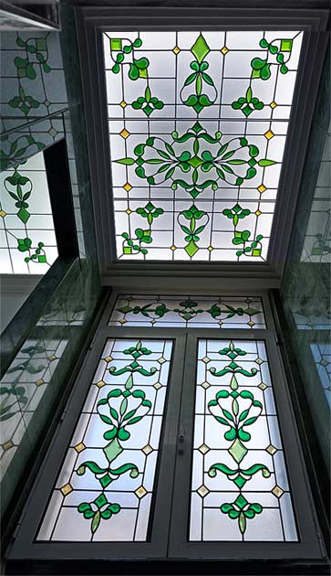 Montage sur corniche et traverses acier Réalisation sur verre feulleté Stadip 44.2 opale