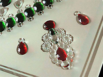 Reconstitution de bijoux par des "faux diamants, rubis et émeraudes" teintés ou non dans la masse