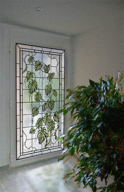 Réalisation sur verre SAHARA ep.4mm Montage sur double vitrage existant par collage silicone