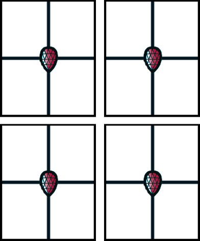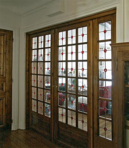 MOTIF : multicarreaux " MTC -14 " avec cabochon POR 40/24 Réalisation sur verre NATURE CRISTAL ep. 4mm - Montage classique sous baguettes
