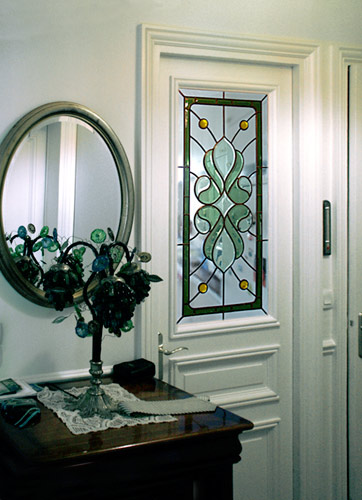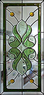 BORDURE : " PENCIL " ( barrettes de verre biseauté ) largeur 25mm et angles arrondis "AGLR" Réalisation sur verre Nature Cristal ep. 4mm - Montage classique sous baguettes