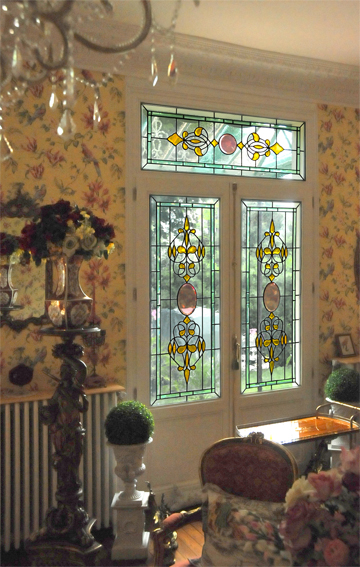 BORDURE " PENCIL " ( Barrettes de verre biseauté rapportées par collage UV )