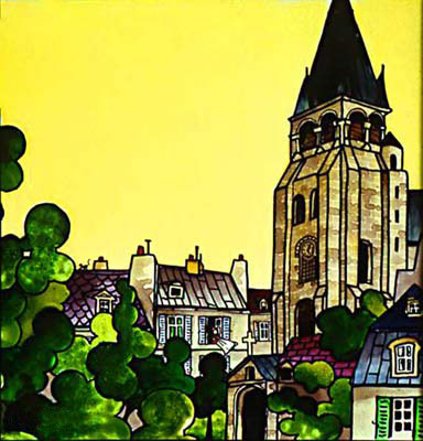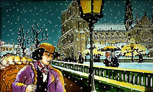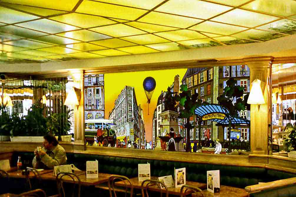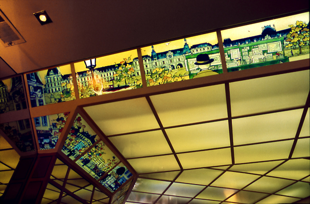 Saynettes Paris en style naïf sur plafond et pans coupés lumineux ( voir détails )