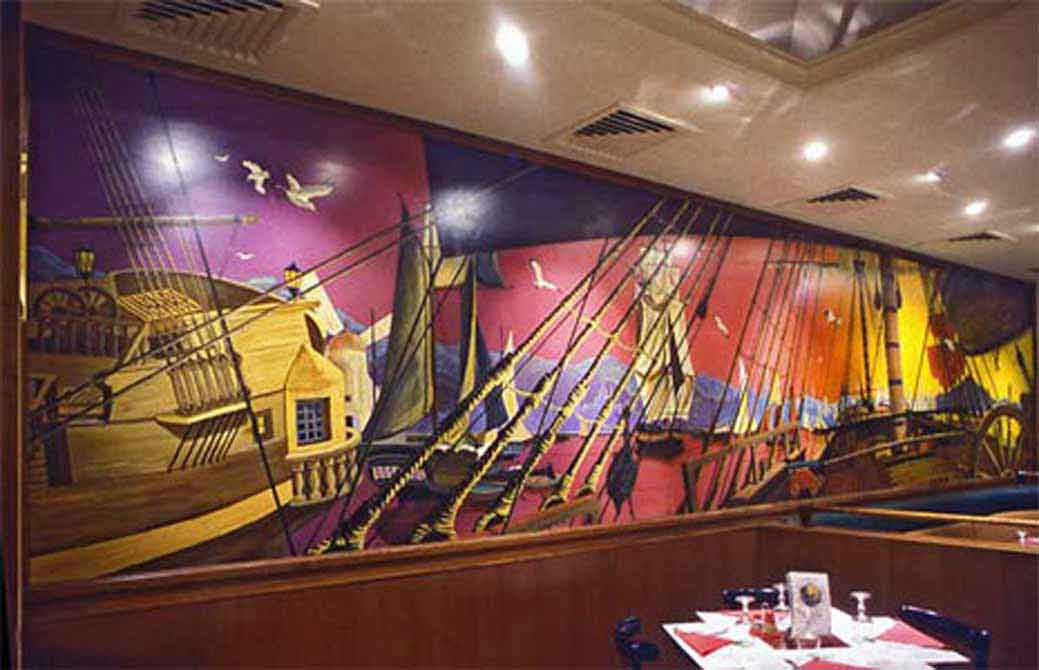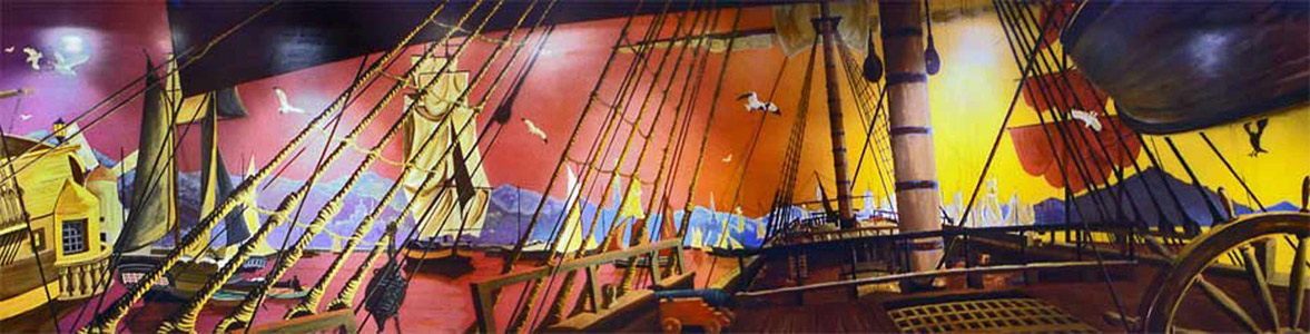 Réalisation sur plexiglass opaque ep. 3mm (1,6 x 6,40 m) - vernis couleur